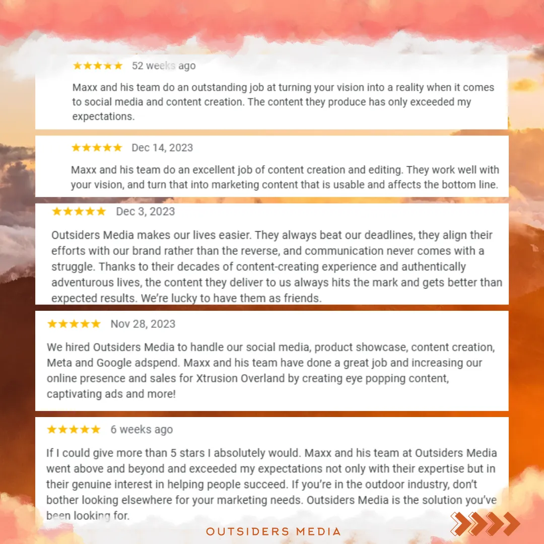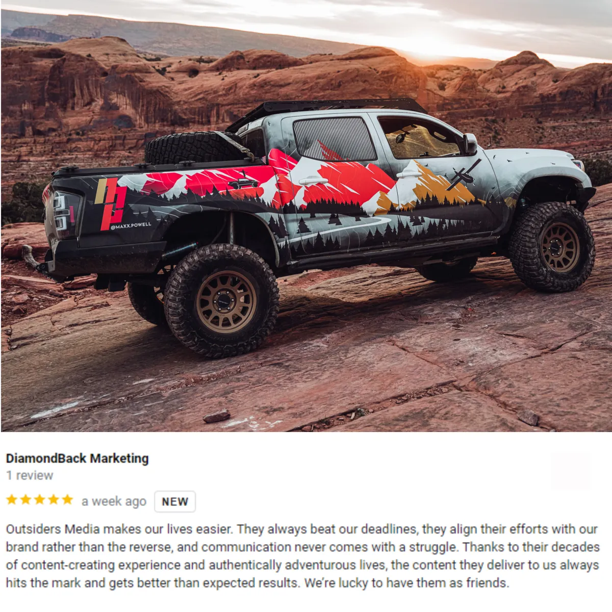 Our team is here to support your business and your existing marketing department. It is our mission to optimize the results of your marketing efforts and to save you time and money. By partnering with Outsiders Media, your company will not only join an amazing network of Influencers, retailers, installers and more, but you are sure to see huge increases in revenue and will avoid costly mistakes along the way.